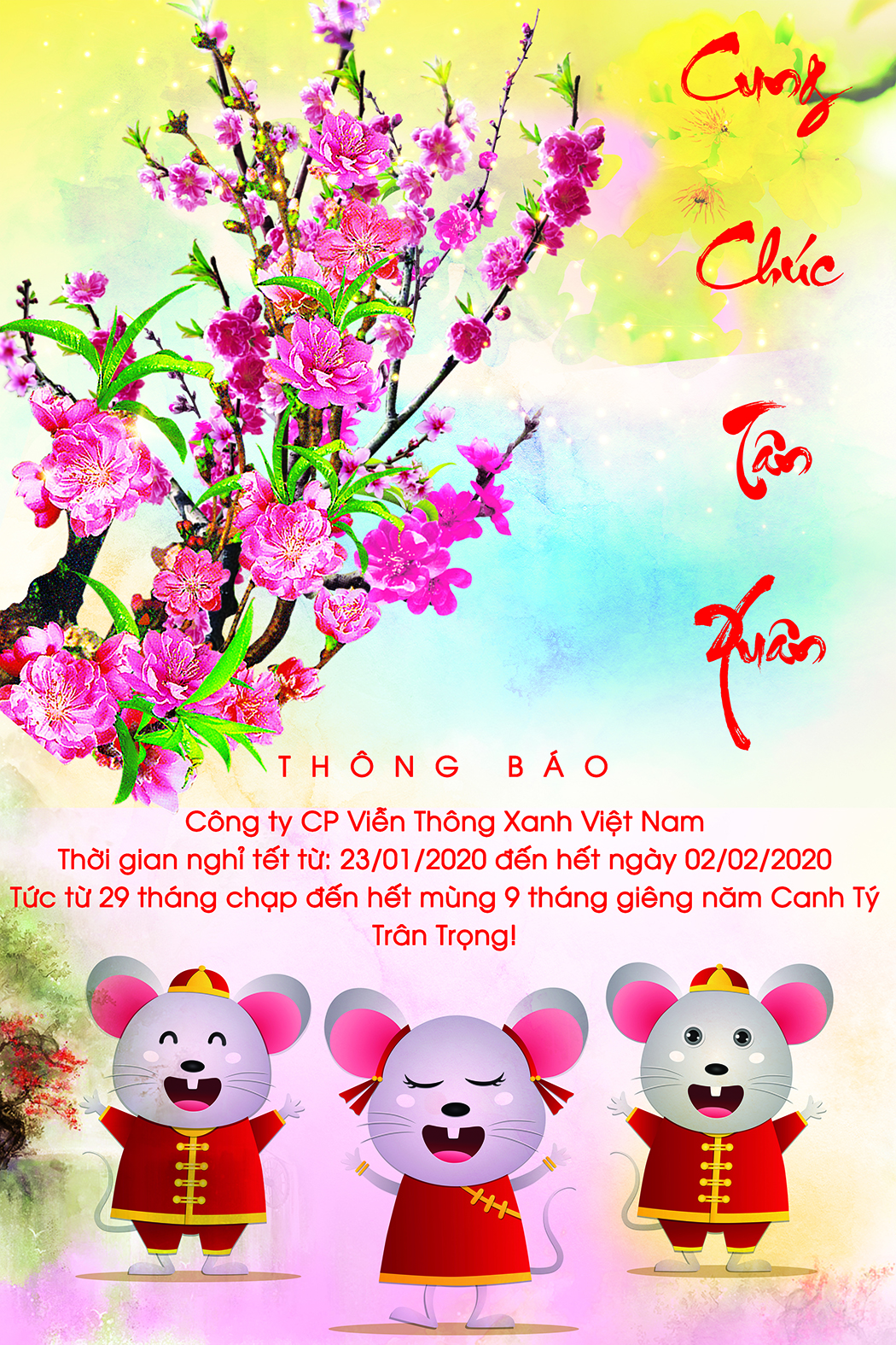 Trong không khí vui mừng chào đón năm mới Canh Tý 2020, Công ty Cổ phần Viễn Thông Xanh Việt Nam xin gửi đến Quý Khách hàng – Quý đối tác lời Chúc mừng năm mới, kính chúc Quý khách hàng – Quý đối tác cùng gia đình một năm mới