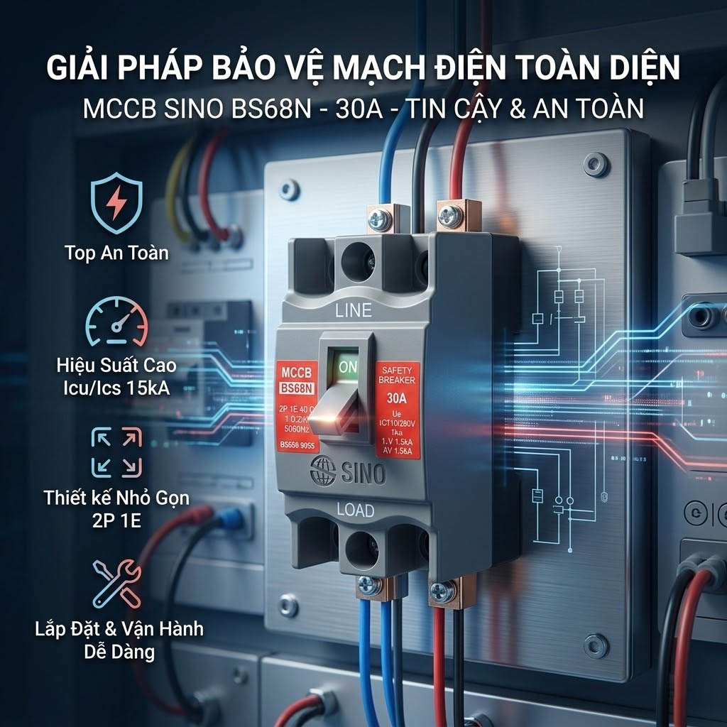 Trong việc thiết kế và phân bổ lưới điện cho các công trình dân dụng hoặc phòng ốc nhỏ, một thiết bị đóng cắt có dải công suất vừa vặn là lựa chọn thông minh để tối ưu chi phí và không gian. Aptomat BS68N được thiết kế chuyên biệt cho mục đích này. Với dải dòng định mức từ 5A đến 30A và khả năng dập hồ quang chuẩn xác, BS68N mang đến sự bảo vệ tin cậy cho các thiết bị điện tải thấp, tuân thủ nghiêm ngặt tiêu chuẩn an toàn quốc tế.