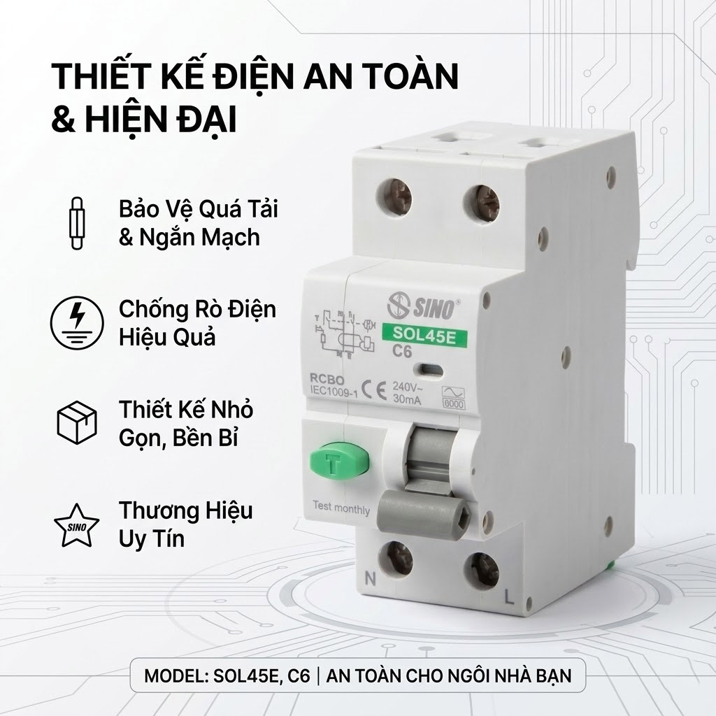 Sự an toàn của hệ thống điện luôn là ưu tiên hàng đầu trong mọi công trình. Cầu dao chống dòng rò RCBO Sê-ri SOL45E 2 cực là thiết bị đóng cắt thế hệ mới, mang đến giải pháp bảo vệ tích hợp hoàn hảo. Không chỉ chống lại nguy cơ rò rỉ điện gây giật, sản phẩm còn ngăn chặn triệt để tình trạng quá tải, bảo vệ tối đa cho con người và hệ thống thiết bị điện trong gia đình cũng như công nghiệp.