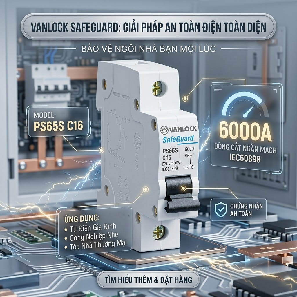Trong bối cảnh hệ thống điện ngày càng phức tạp với nhiều thiết bị công suất cao, việc trang bị một thiết bị đóng cắt an toàn, phản hồi nhanh là điều bắt buộc. Cầu dao tự động (MCB – Miniature Circuit Breaker) 1 cực PS65S chính là “chốt chặn” an toàn, hiệu quả, được thiết kế để bảo vệ tối ưu cho hệ thống dây dẫn và các thiết bị điện trước những rủi ro quá tải (Overload) và ngắn mạch (Short Circuit).