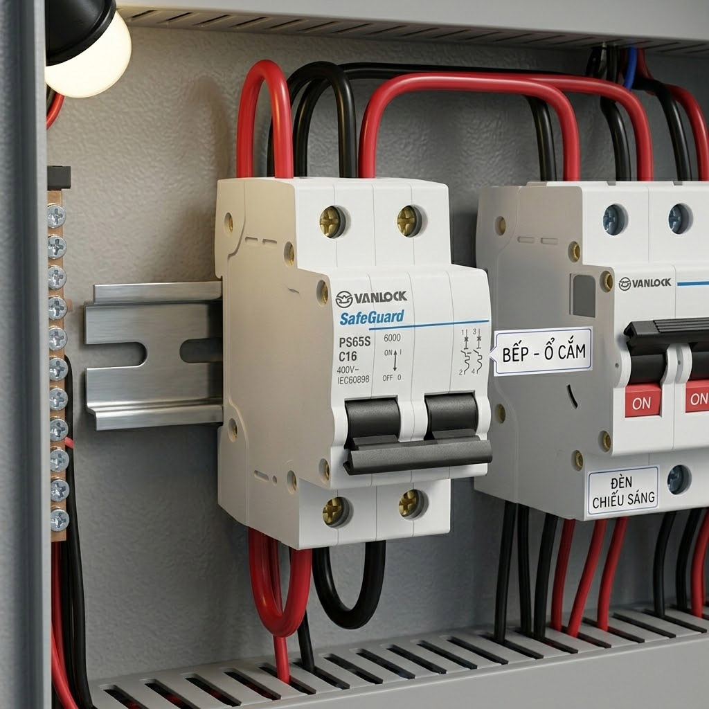 Sử dụng đúng tải: Chọn dòng Ampe (6A-63A) phù hợp với tiết diện dây dẫn và công suất tổng để tránh tình trạng “nhảy” CB thường xuyên do quá tải.