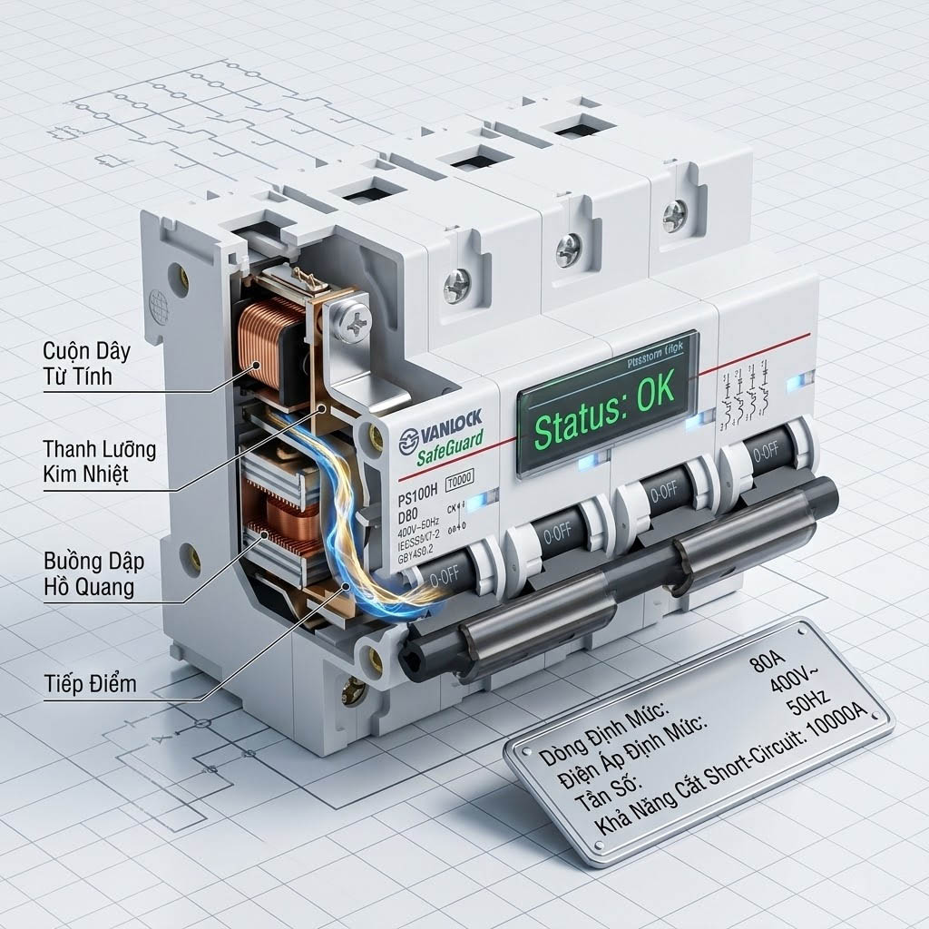 Cách ly điện hoàn toàn (Total Isolation): Trong trường hợp xảy ra sự cố rò rỉ điện hoặc cần bảo trì hệ thống, việc ngắt chiếc aptomat này sẽ tách rời hoàn toàn mạng điện cục bộ khỏi lưới điện quốc gia (bao gồm cả dây trung tính). Điều này triệt tiêu hoàn toàn nguy cơ điện giật do dòng điện quẩn hoặc điện áp xuất hiện ngược trên dây trung tính.