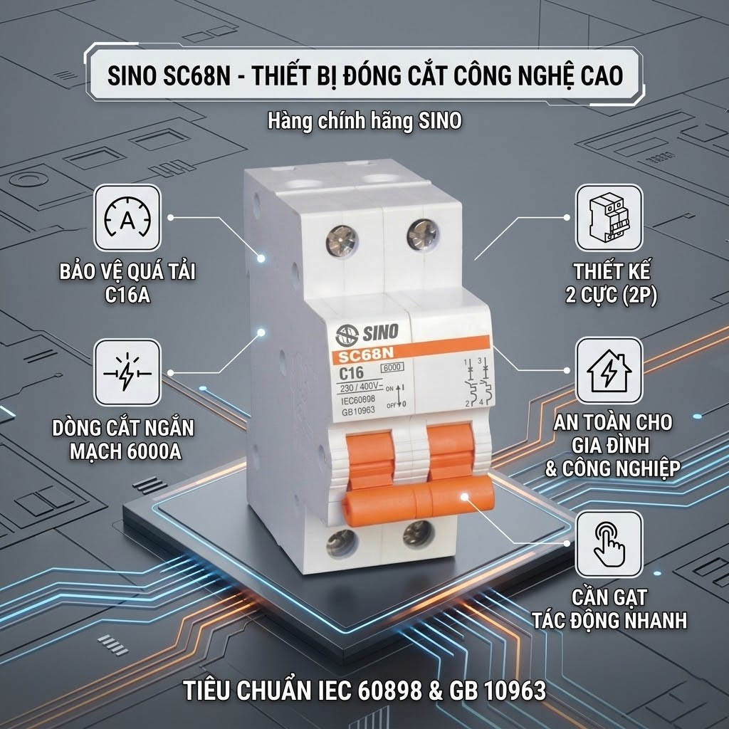 Trong hệ thống điện dân dụng và các cơ sở kinh doanh, việc đảm bảo an toàn tuyệt đối khi xảy ra sự cố là ưu tiên số một. Aptomat SC68N – 2 Cực mang đến một cấp độ bảo vệ cao hơn so với dòng 1 cực thông thường nhờ khả năng đóng cắt đồng thời hai đường dây. Thiết kế này giúp cách ly hoàn toàn thiết bị khỏi nguồn điện, triệt tiêu nguy cơ rò rỉ dòng điện ngược.