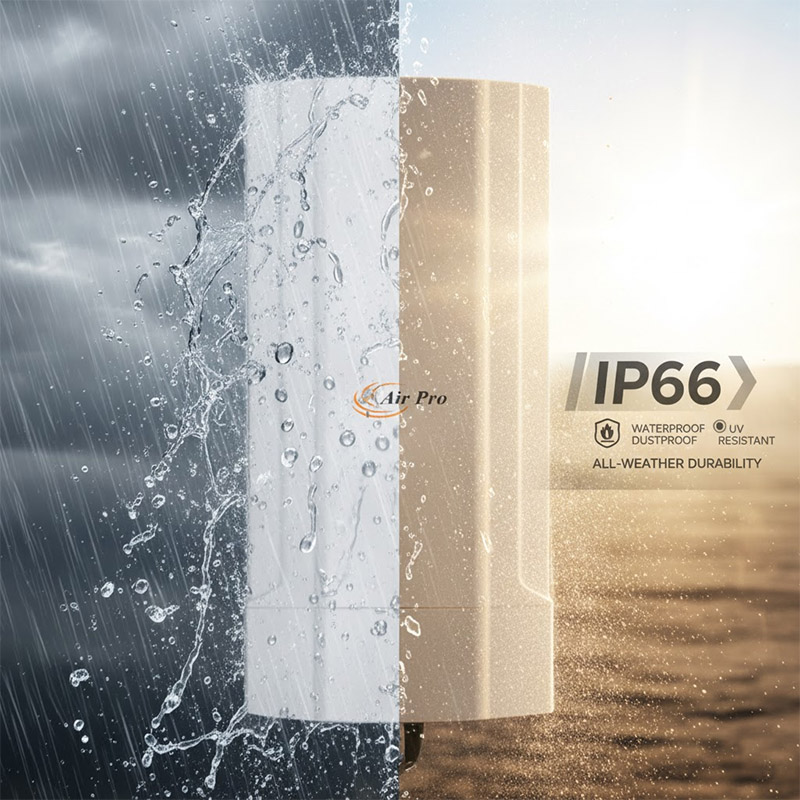 AIR-MO1200 được sản xuất theo tiêu chuẩn G7, bảo đảm chất lượng và độ ổn định cao trong môi trường khắc nghiệt. Vỏ ngoài bằng vật liệu ABS chống nước, chống bụi, chống tia UV, đạt chuẩn bảo vệ IP66, giúp thiết bị hoạt động tốt ngay cả trong điều kiện mưa lớn hay nắng gắt.
