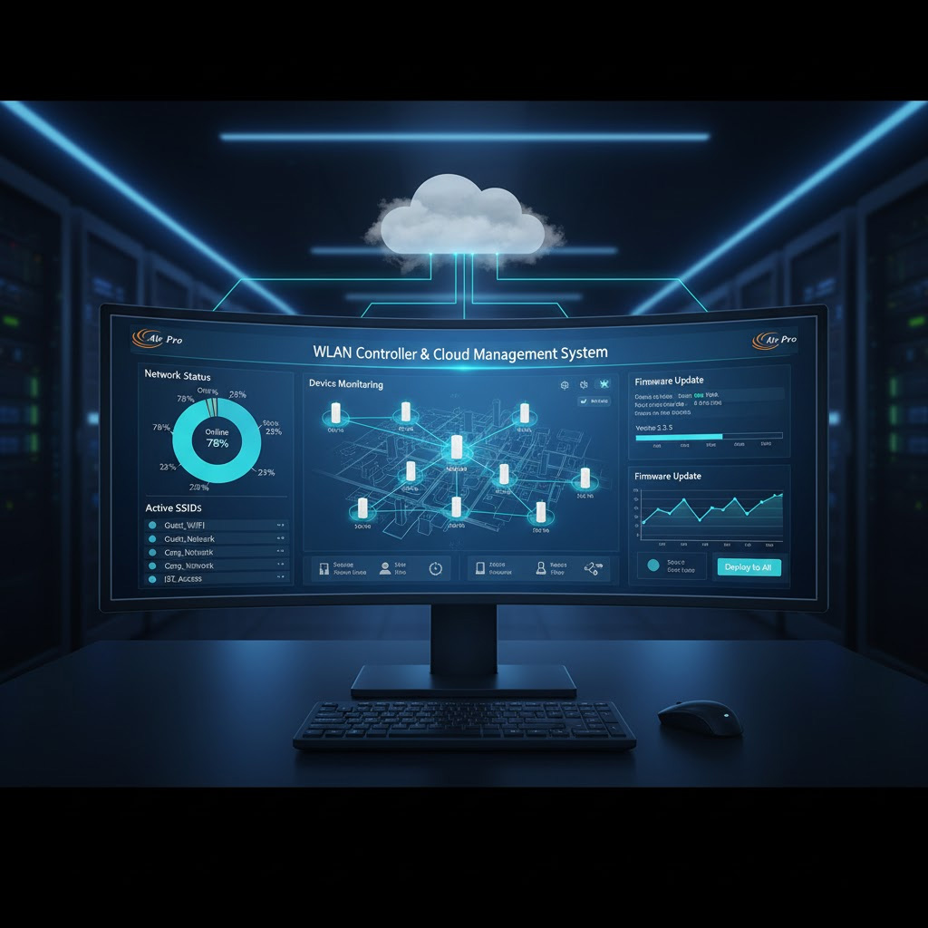 AIR-MO1200 có thể hoạt động với WLAN Controller hoặc hệ thống quản lý đám mây (Cloud Management System), cho phép cấu hình, giám sát, cập nhật firmware, sao lưu và quản lý từ xa. Thiết bị hỗ trợ nhiều SSID, VLAN, tính năng Band Steering và Wi-Fi Roaming – phù hợp với yêu cầu triển khai mạng chuyên nghiệp quy mô lớn.