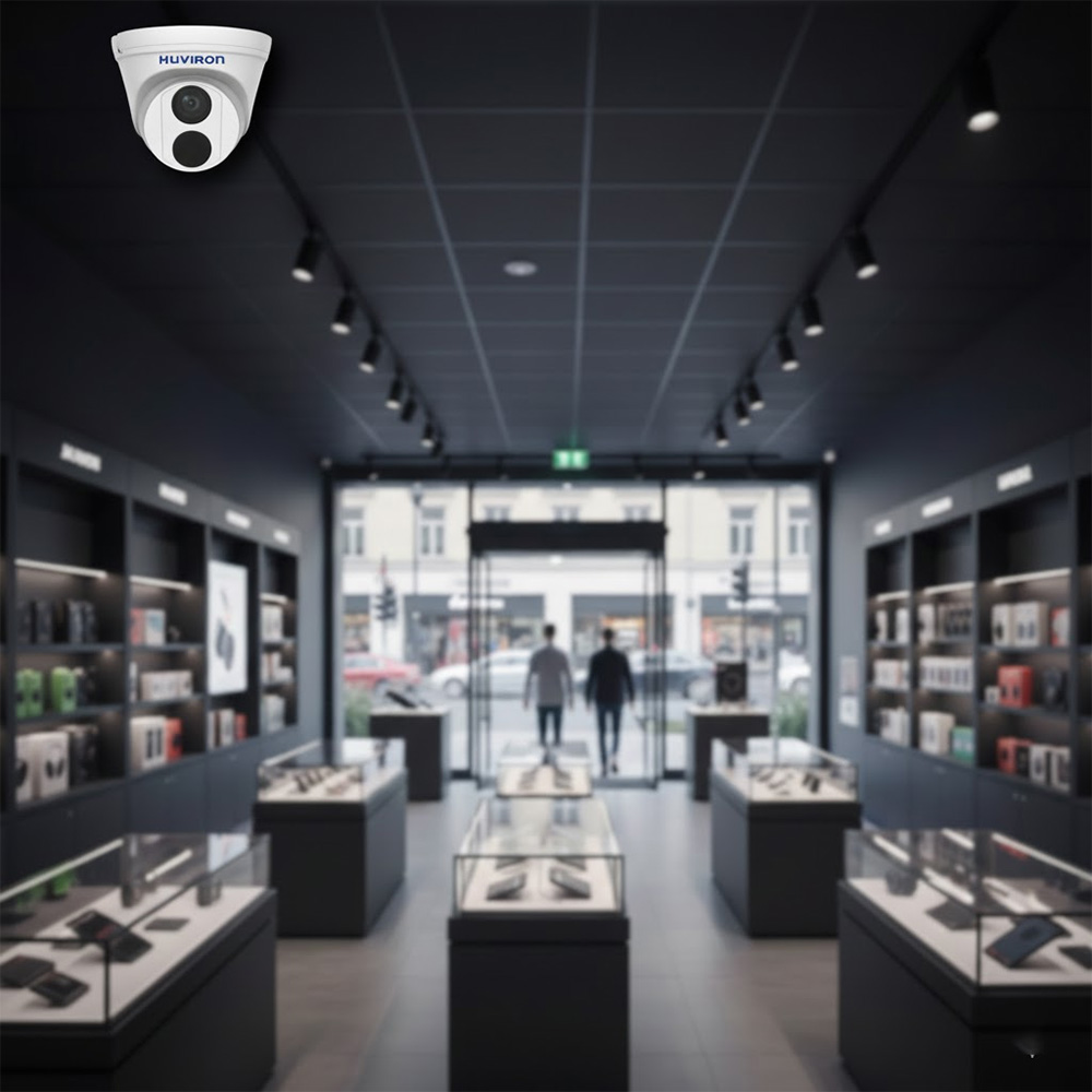 Camera DOME hồng ngoại HUVIRON HU-ND225_I3 2MP được lắp đặt tại cửa hàng