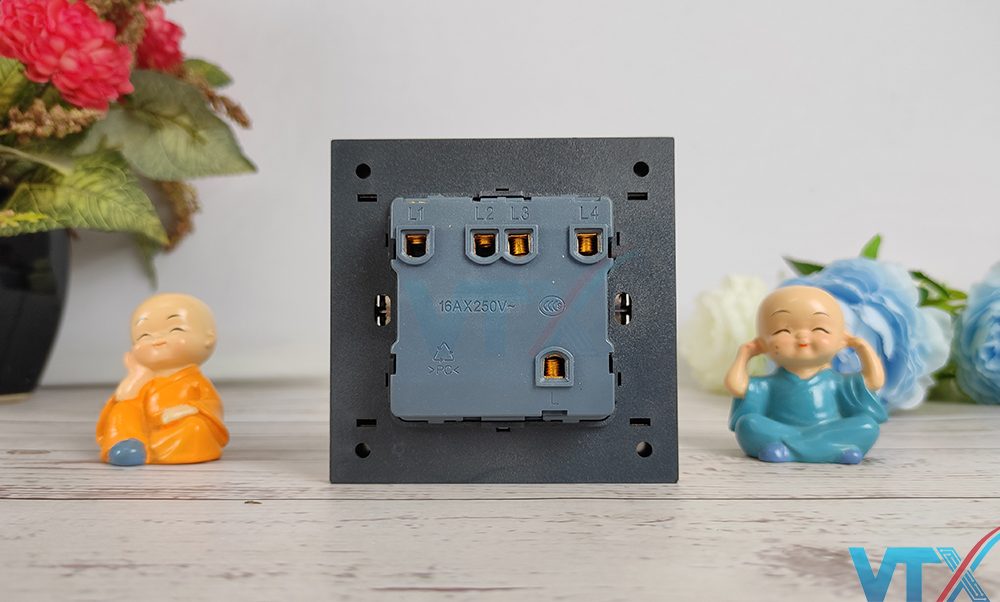 Công tắc TK-F71-A-04 chính hãng được thiết kế theo tiêu chuẩn quốc tế với các dạng đế âm tường hoặc nổi và có 4 công tắc độc lập trên mặt chuẩn vuông gọn gàng, giúp nâng tầm không gian sang trọng, tinh tế.