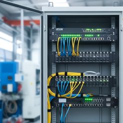 Khung nguồn Converter tập trung UPCOM MW-R16 16 khe cắm gắn giá 2U được lắp đặt trong tủ mạng..