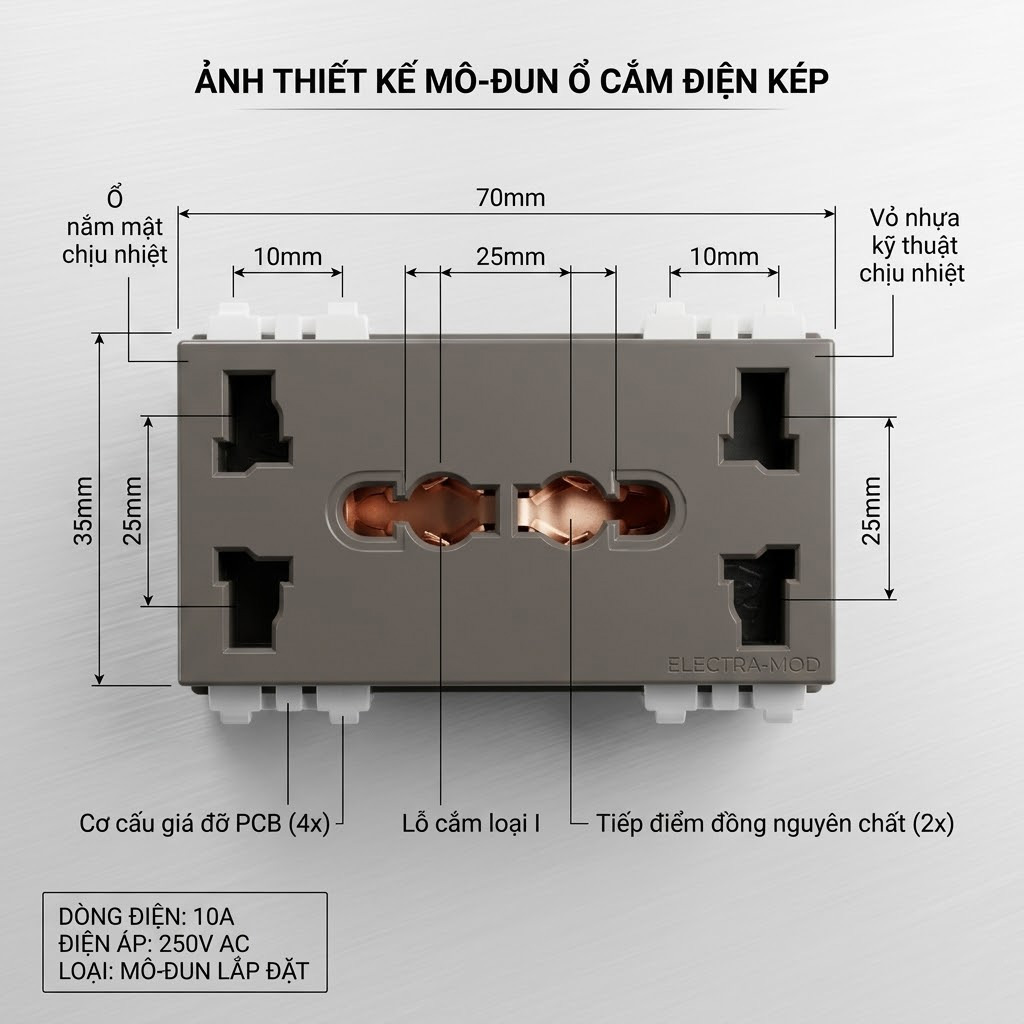 Chất lượng truyền tải dòng điện đỉnh cao: Khung tiếp điểm bên trong ôm chặt chân phích, duy trì kết nối điện liền mạch, chống mô-ve (đánh lửa) gây chập cháy. Sản phẩm tương thích hoàn toàn với mạng lưới điện Việt Nam (220V-240V/50Hz).