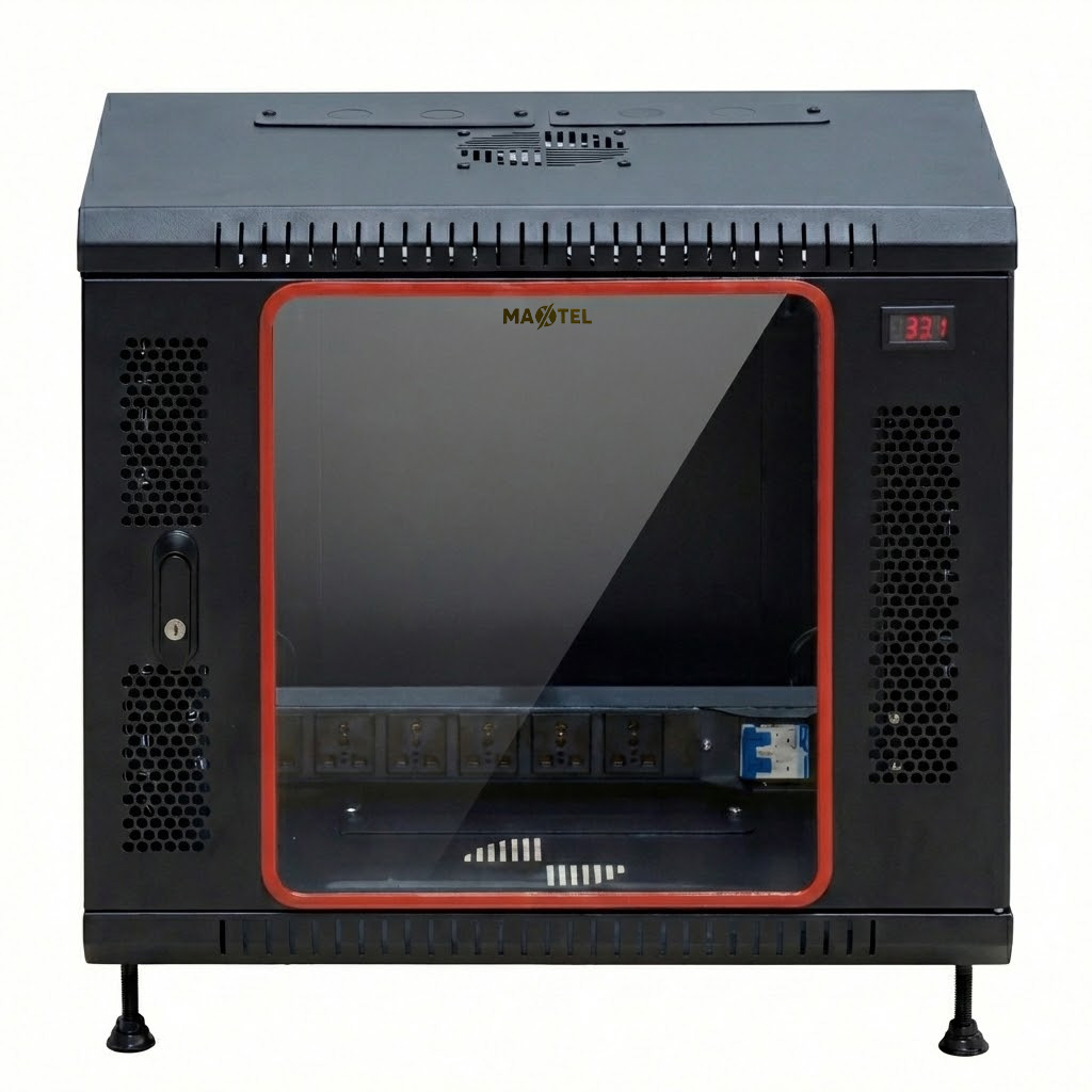 Hệ thống làm mát và kiểm soát nhiệt độ Tủ đi kèm 02 quạt tản nhiệt (theo bộ phụ kiện) giúp luân chuyển không khí mạnh mẽ, đảm bảo thiết bị không bị om nhiệt. Kết hợp với đồng hồ đo nhiệt độ hiển thị trực quan bên ngoài cánh tủ, bạn sẽ luôn nắm bắt được tình trạng sức khỏe của hệ thống mạng.
