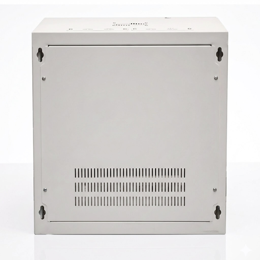 - Tủ có cửa trước bằng kính hoặc mica trong suốt, cho phép quan sát dễ dàng các thiết bị bên trong mà không cần mở cửa.