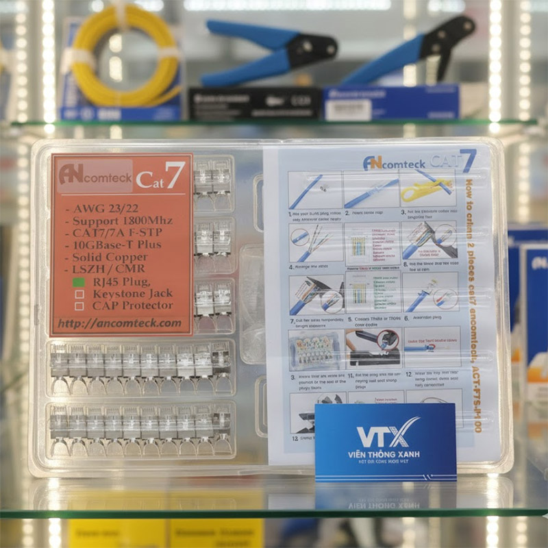 Trong bối cảnh hệ thống mạng ngày càng đòi hỏi tốc độ cao, độ ổn định và khả năng chống nhiễu tối ưu, Nhân mạng Cat7 F-STP ACT-F7S-P100 Ancomteck chính hãng là lựa chọn lý tưởng cho các công trình mạng hiện đại.