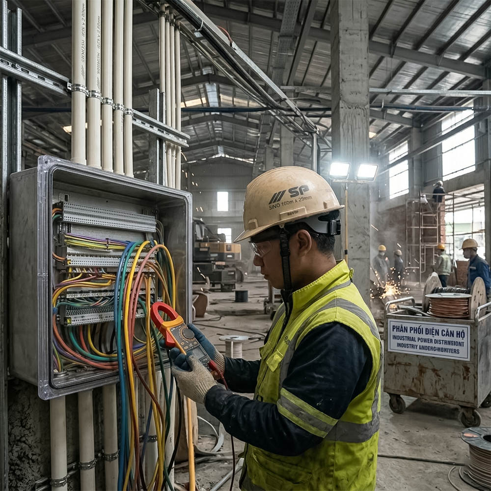Ống nhựa cứng luồn dây điện Sino SP9025H 1250N ứng dụng thực tế trong nhà xưởng