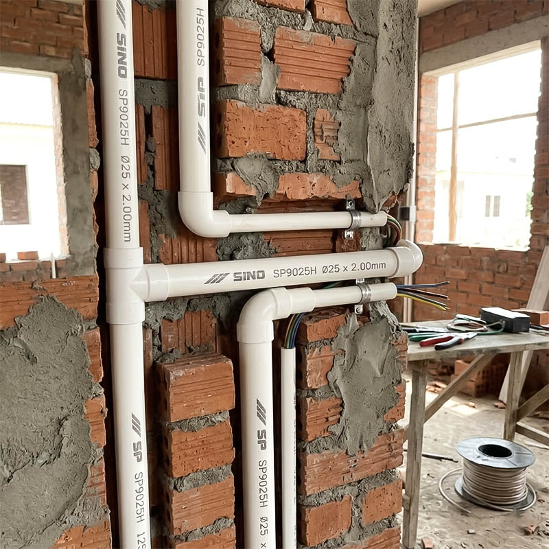 Ống nhựa cứng luồn dây điện Sino SP9025H 1250N ứng dụng trong hệ thống điện nhà ở