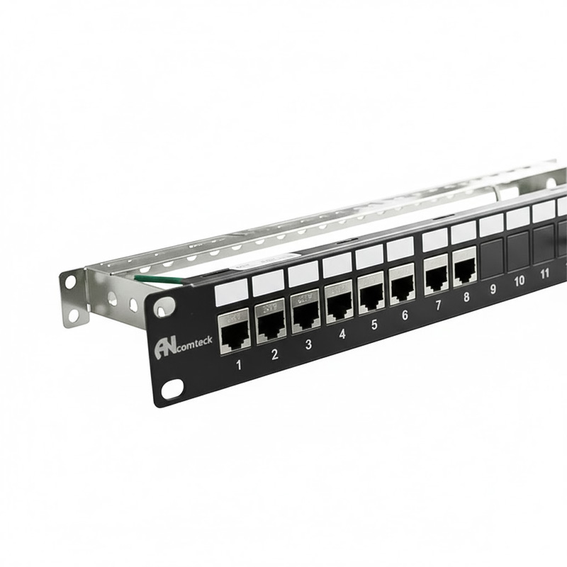 Patch Panel Cat5 UTP ANCOMTECK 16 cổng Model ACT-16S1U | ACT-5U-88 là giải pháp đấu nối mạng chuyên nghiệp, giúp hệ thống cáp mạng được sắp xếp gọn gàng, khoa học và dễ dàng quản lý. Sản phẩm được thiết kế theo chuẩn rack 19 inch, dạng 1U, phù hợp với hầu hết các loại tủ mạng phổ biến hiện nay.