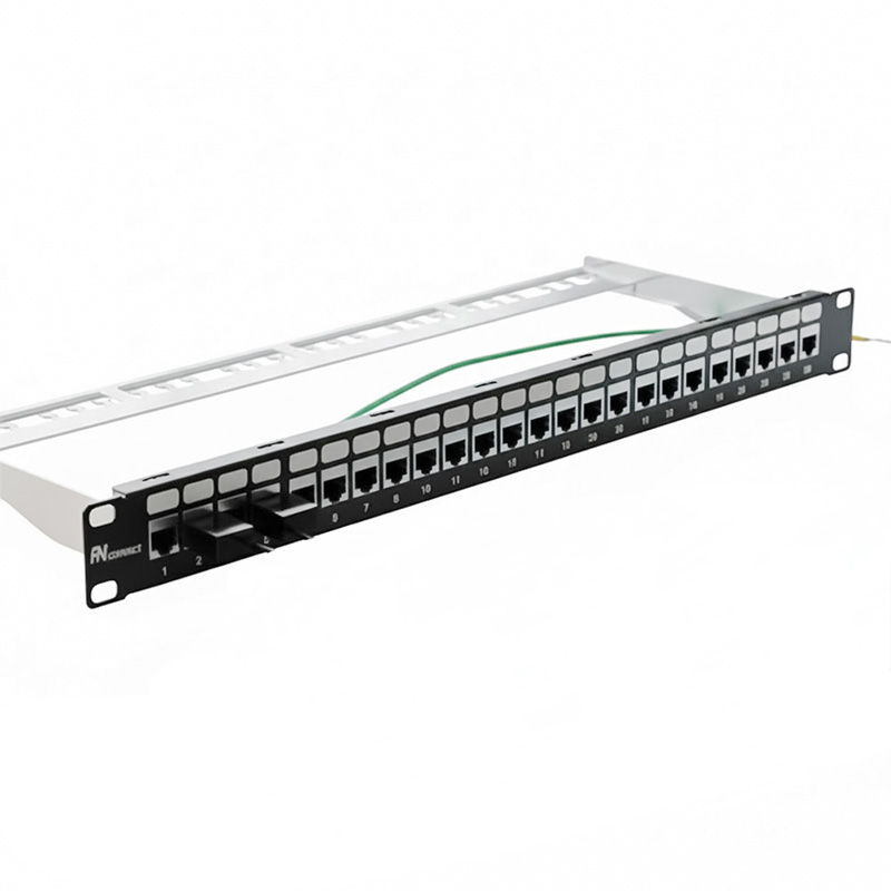 Patch Panel ANCOMTECK 24 cổng Cat5E UTP ACT-24S1U là thiết bị trung tâm trong các tủ rack, dùng để đấu nối và quản lý hệ thống cáp mạng một cách gọn gàng và chuyên nghiệp.