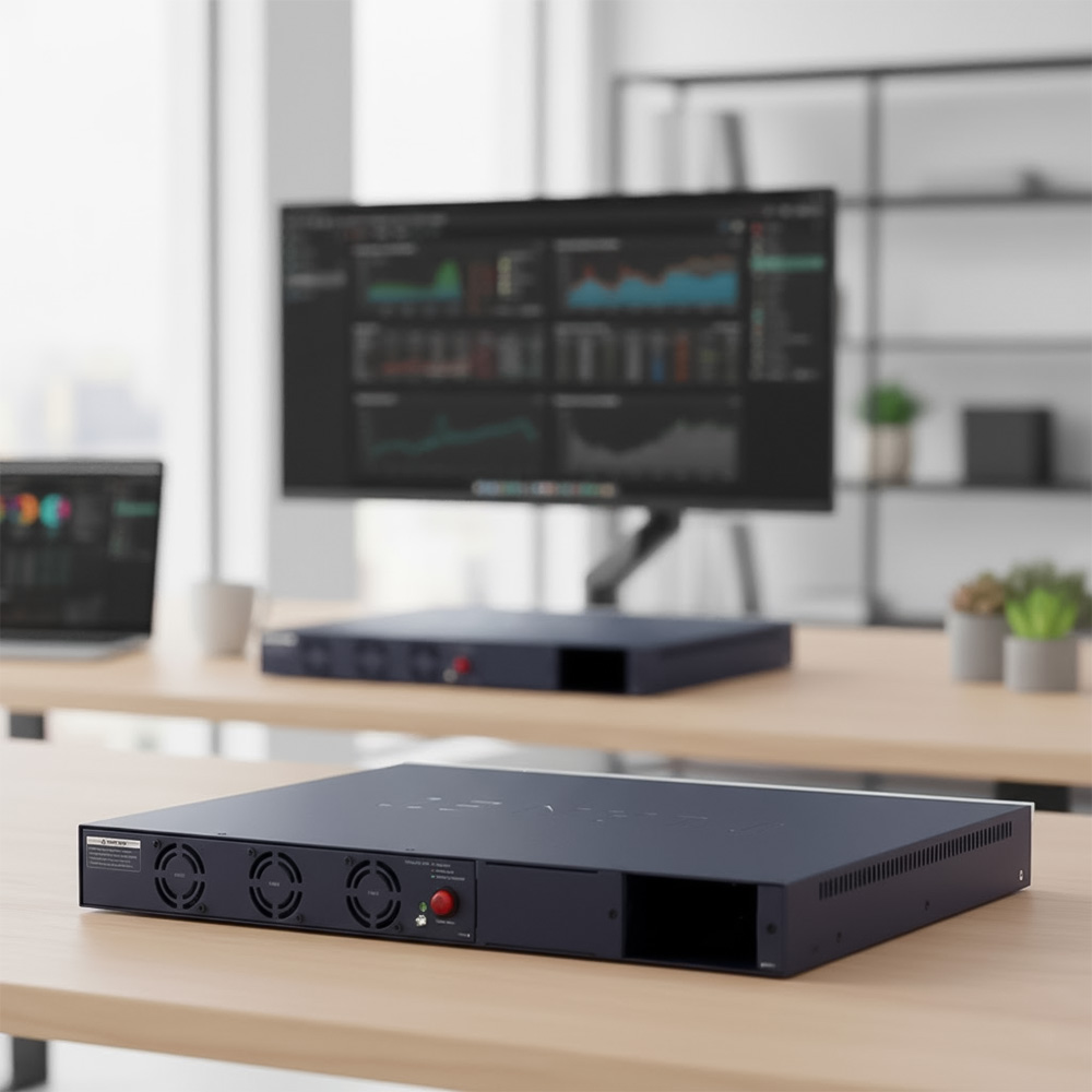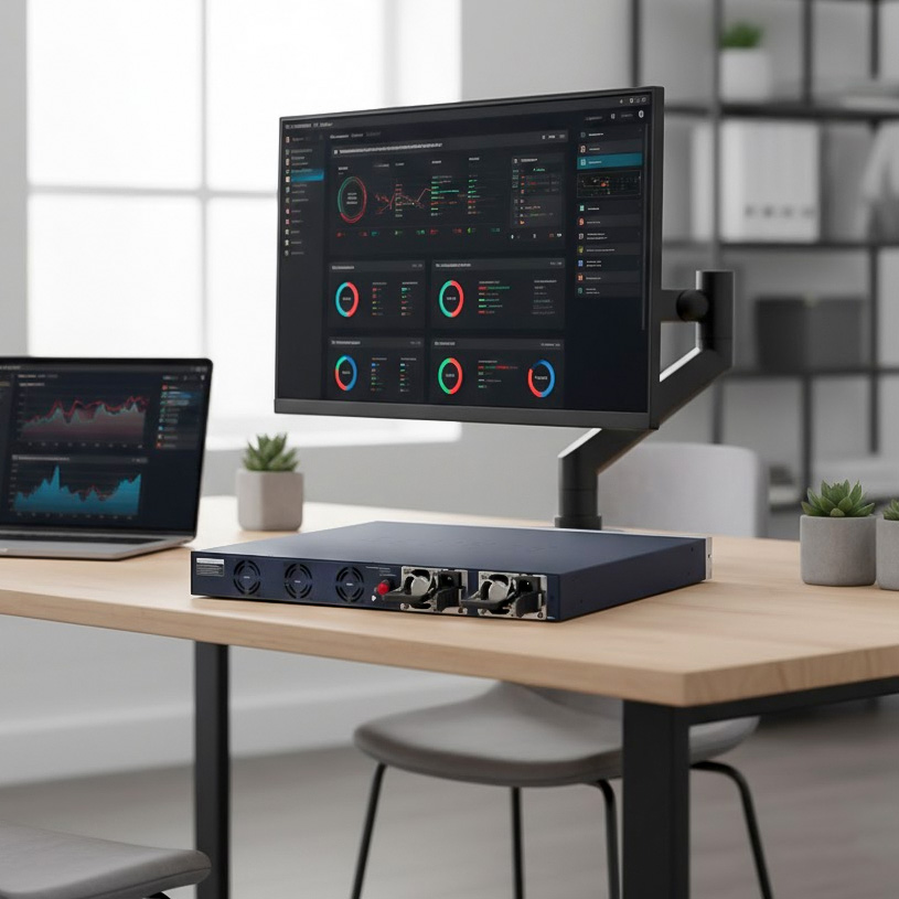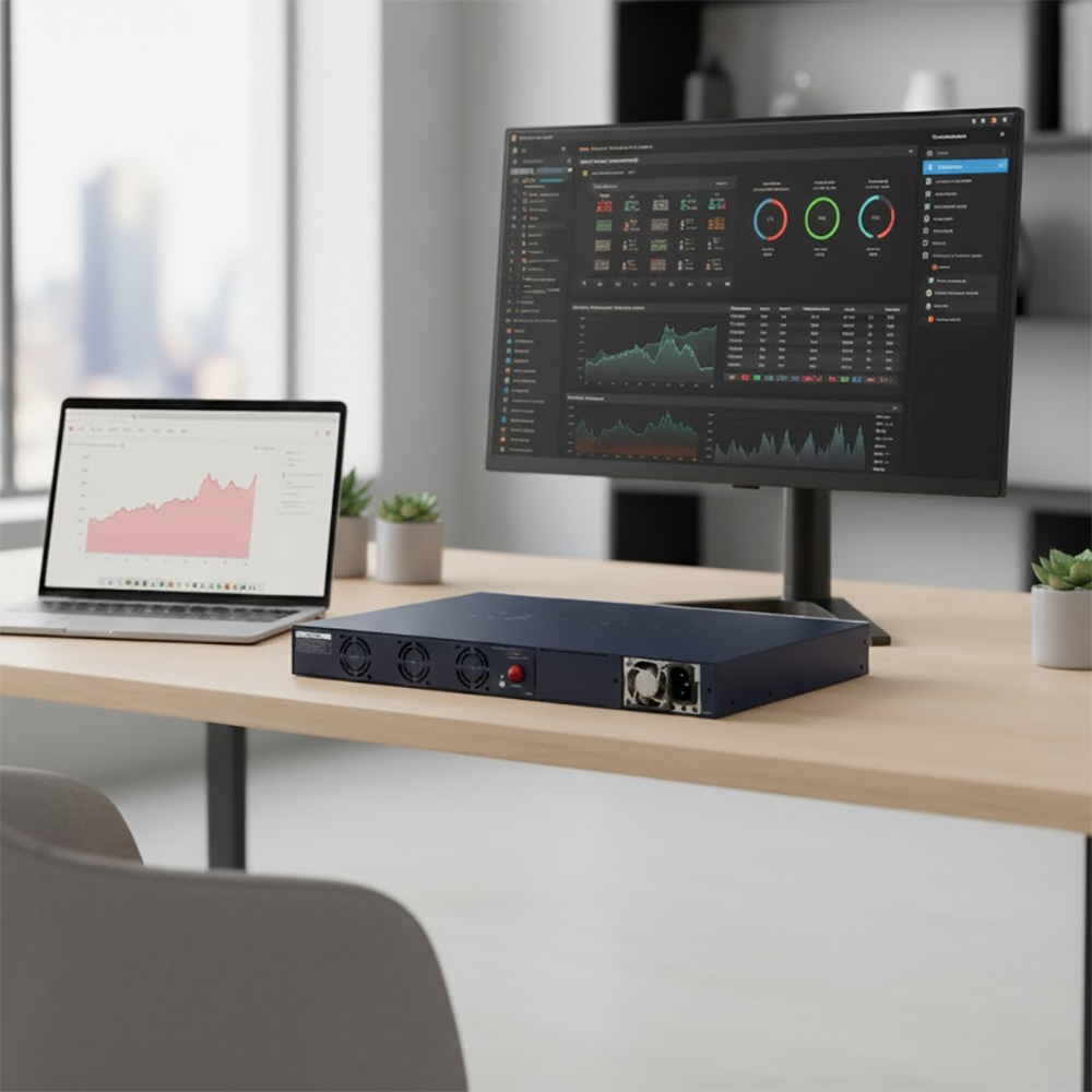 Tích hợp SFP-DDM (Digital Diagnostic Monitoring) cho phép giám sát thời gian thực thông số quang học như nhiệt độ, công suất truyền/nhận, dòng laser và điện áp, giúp bảo trì mạng chính xác, chủ động.