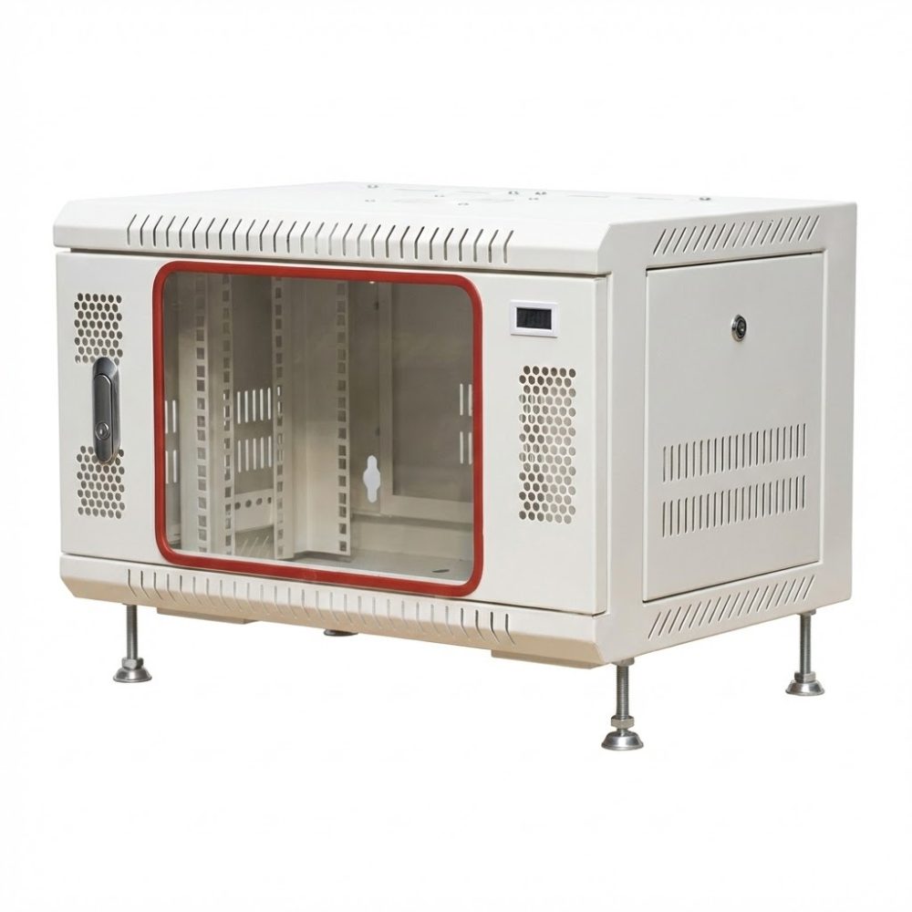 Cửa Mica/Kính cường lực: Cửa trước thiết kế dạng mika hoặc kính trong suốt, giúp kỹ thuật viên dễ dàng quan sát trạng thái đèn tín hiệu của router, switch bên trong mà không cần mở khóa tủ.